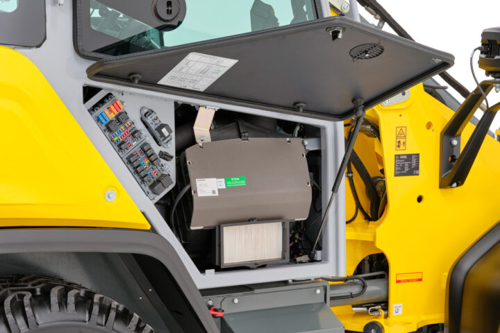 Huoltokohteet on suunniteltu helposti saavutettaviksi. Hydrauliletkut on reititetty optimaalisesti, ja ohjausventtiili on integroitu koneen eturunkoon, jonne pääsee helposti huoltoluukun kautta. Tämä vähentää ohjaamossa syntyvää lämpöä ja melua sekä helpottaa huoltotöitä merkittävästi. Nopea ja vaivaton huolto lisää Wacker Neuson WL1150 -pyöräkuormaajan käyttöastetta ja pitää käyttökustannukset kurissa.