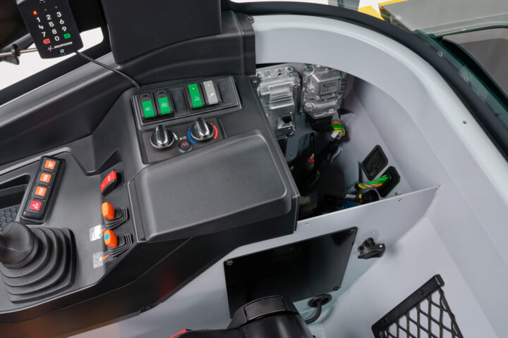 Ohjaamo on suunniteltu kuljettajan tarpeet huomioon ottaen ja mahdollistaa turvallisen ja väsymättömän työskentelyn: enemmän tilaa, enemmän säilytysmahdollisuuksia ja leveämpi sisäänkäynti. Nelipilarinen rakenne, syvävedettävät ikkunat ja panoraamallinen takalasi takaavat optimaalisen 360° näkyvyyden.