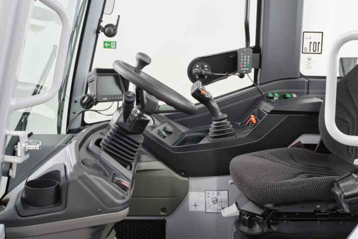 Ohjaamo on suunniteltu kuljettajan tarpeet huomioon ottaen ja mahdollistaa turvallisen ja väsymättömän työskentelyn: enemmän tilaa, enemmän säilytysmahdollisuuksia ja leveämpi sisäänkäynti. Nelipilarinen rakenne, syvävedettävät ikkunat ja panoraamallinen takalasi takaavat optimaalisen 360° näkyvyyden.